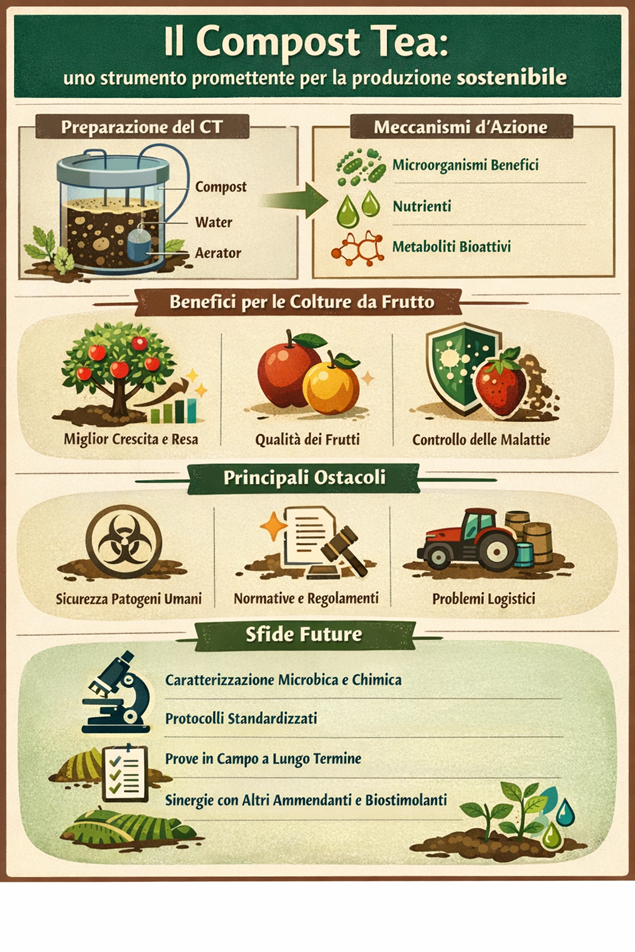 Pubblicata un’analisi critica (focus le colture arboree) sulle attuali conoscenze scientifiche relative al tè di compost: senza protocolli chiari, il rischio è di produrre un liquido i cui effetti in campo non sono sempre prevedibili.