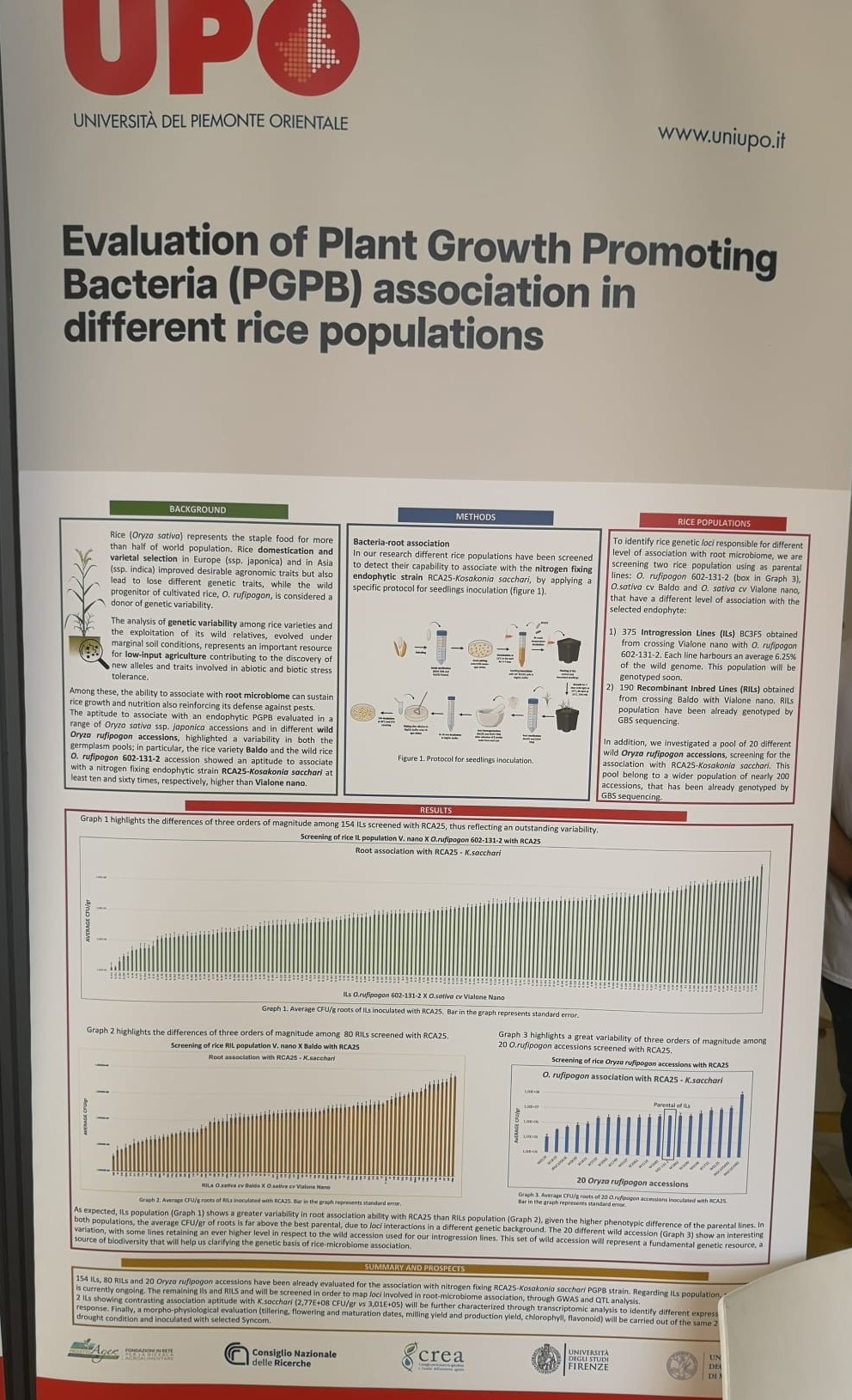 Dal 12 al 14 settembre 2025, Vercelli ha ospitato RISÒ – Festival internazionale del Riso, che ha trasformato la città in un grande laboratorio di scienza, cultura e gastronomia. Allo stand dell’Università del Piemonte Orientale (UPO), i visitatori hanno potuto esplorare le ricerche sul microbiota del riso, raccontate anche da Giorgia Siviero, dottoranda impegnata proprio sul Progetto. Sabato 13 settembre, la tavola rotonda “Agricoltura. Riso e cambiamenti climatici” ha visto inoltre protagonisti i ricercatori UPO insieme ad altri esperti del settore, in un confronto diretto con il pubblico.