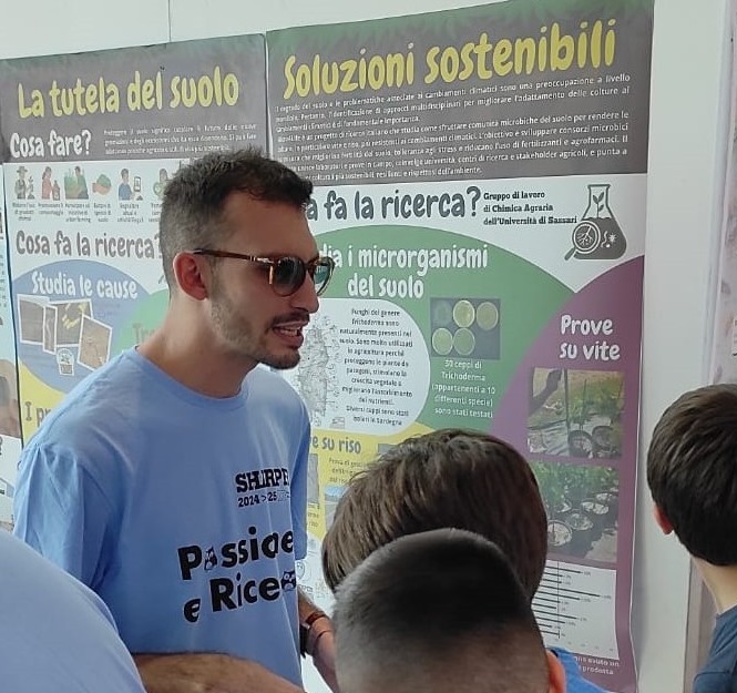 Il viaggio di Micro4Life nel mese di settembre si è arricchito anche con la partecipazione dell’Università di Sassari a SHARPER – Notte europea dei Ricercatori 2025, svoltasi a Sassari il 25 e 26 settembre. Questa tappa ha permesso al progetto di illustrare i risultati di Micro4Life a un pubblico costituito da studenti di vario grado e cittadini, proseguendo il percorso di divulgazione scientifica e dialogo aperto con la società. In particolare, il dott. Leonardo Piseddu, giovane borsista finanziato da Micro4Life, ha presentato un poster e illustrato i risultati del progetto a una platea eterogenea, rendendo accessibili concetti complessi attraverso un linguaggio chiaro e coinvolgente.